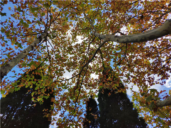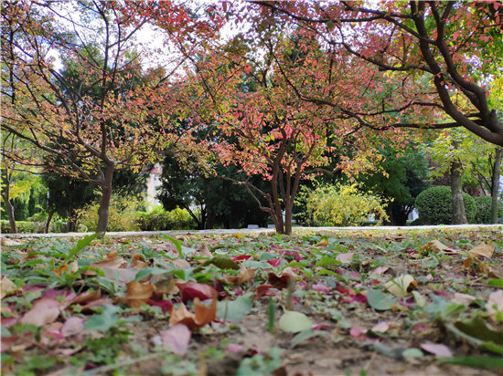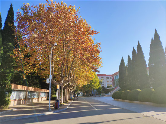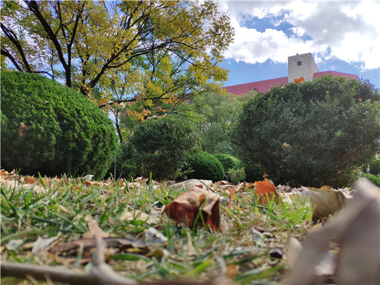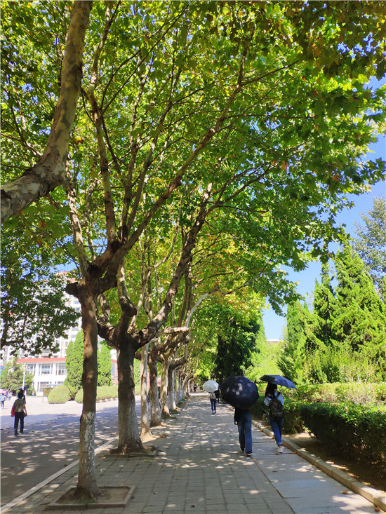 初来烟大,刚刚与烟大的夏天,有过一个短暂相遇,一个转身,她便那么快的离我远去。走过炽烈清新的夏天,迎来落叶纷飞的秋天。看,烟大的秋天,繁华似锦,满地金黄落缤纷。树叶由绿转为金黄,绿草,红树,黄叶交织在一起,让我忍不住摁下快门,记录这一美景。