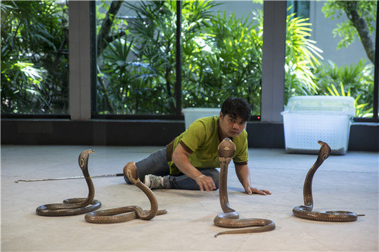 “表演”图中的4只蛇都是剧毒的未拔牙毒蛇,每次表演都是生离死别。