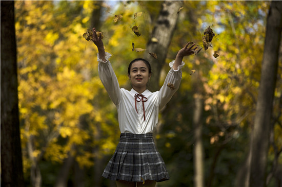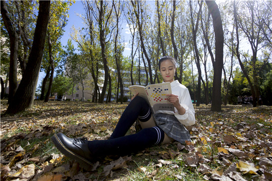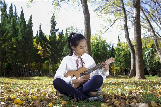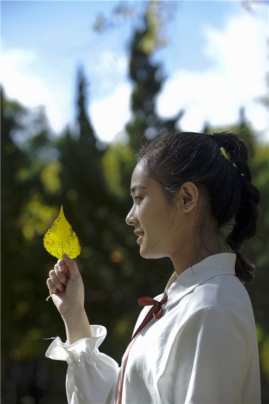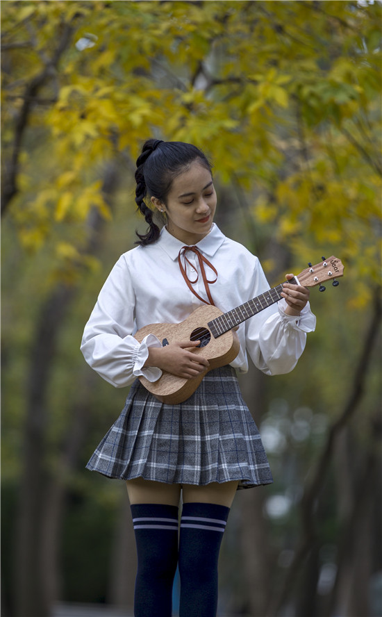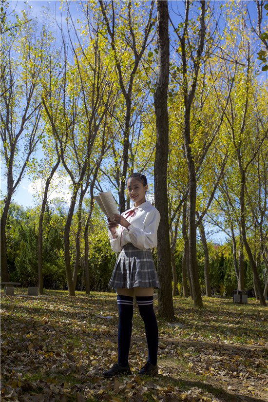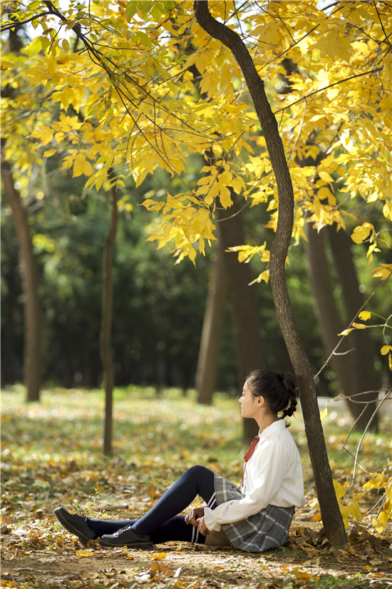 在青黄相接的秋日里,树林里隐藏着一份独属于少女的静谧美好,看书、弹琴、静坐、思考,这样的美会不会吸引你