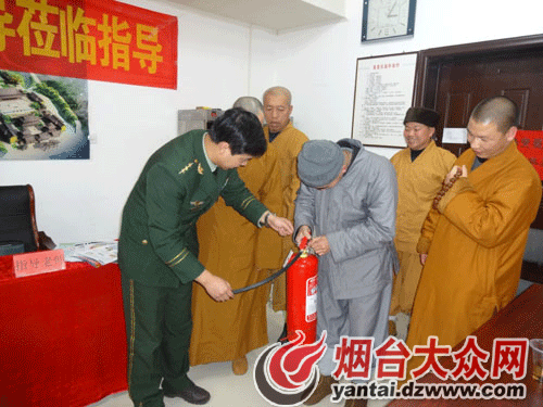 大众网烟台2月27日讯 (通讯员 冯大勇 刘伟 记者 王宁) 佛教文化源远流长深受广大游客的信仰,位于烟台市福山区的合卢寺多年来一直香火旺盛,往来游客众多,随着烧香焚烛的形式日益多样,势必给安全防火等埋下祸根。为了给寺庙提供一个良好的消防安全环境,福山消防大队趋利抑弊,因势利导,灵活实际地采取培养寺庙消防明白人为举措力争将民间宗教活动引向健康的轨道。