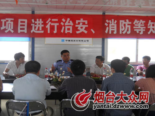 大众网烟台6月6日讯 (通讯员 徐丽娟 记者 王瑜) 为进一步增强工地外来务工人员的安全防范意识,保障工地治安秩序稳定,6月6日上午,烟台市公安局莱山分局初家派出所组织社区民警深入辖区工地开展了一次别开生面的普法讲座,工地负责人、建筑监理以及项目组长共50余人参加了此次会议。