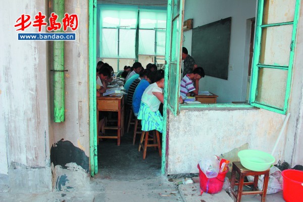 课桌紧挨学生满挤在一起把课上