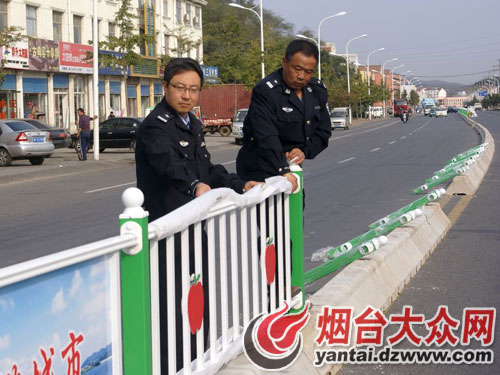 大众网烟台3月22日讯(通讯员 梁典成 林鲲 记者 林有权 实习生 王倩倩)为进一步优化城市交通秩序,有效预防和减少道路交通事故的发生,同时树立“果都”栖霞的良好形象,栖霞交警大队积极争取市委市政府的支持,投资100余万元在迎宾路安装苹果图案的中央隔离护栏共计8.5公里。