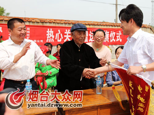 大众网烟台6月4日讯 (通讯员 冷少刚 李彦山 记者 张雪松) 欢快的秧歌扭起来,喧天的锣鼓敲起来。5月31日上午,蚕庄镇柳杭村的街道上一片欢腾。这一天,曾经走进央视节目的招远“至爱老人”刘盛兰隆重举行了“感谢热心关怀” 赠锦旗仪式,以感谢招远电力公司等五家单位为其所提供的真情关怀。