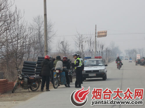大众网烟台3月19日讯(通讯员 冯磊 温永伟 孙菁 记者 林有权 实习生 王倩倩)了确保广大人民群众春季的出行安全,招远交警在全市范围内迅速启动“迅雷2013”行动;3月16-17日两天,招远交警利用周末时间,开展早查统一行动。针对辖区乡镇摩托车、三轮车牌证不全现象,此次行动大队以文三线、206国道、招辛快速路为重点路段,安排警力深入乡镇农村,重点整治摩托车、三轮车不按规定车道行驶、无牌无证、违规载人等违法行为;期间,大队出动警力420余人次,警车170余辆次,查获各类违法行为319起,其中查获摩托车不戴安全头盔79起,不按车道行驶125起,不系安全带85起,取得了良好效果。