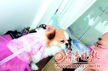你见过小猫小狗穿着浪漫蕾丝裙和西服套装的迷你版么?5日,记者在牟平就见到了一位宠物裁缝李文静,她专门做小猫小狗的礼服和饰品。
