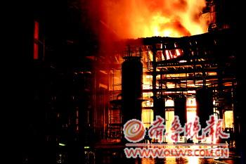 东营一石化公司大火 两小时扑灭无人伤亡