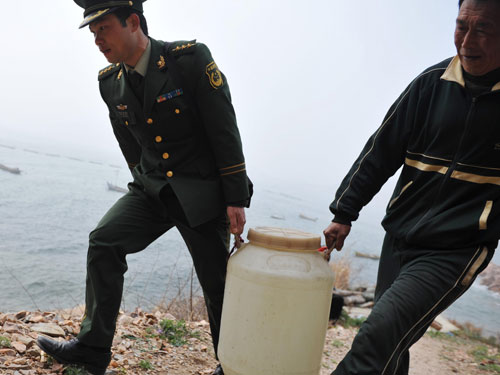 每隔一段时间,许显朝就会给住在山洞的外迁户送来淡水