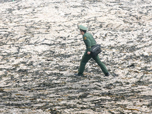 沙滩上晾晒的裙带菜,许显朝引导村民养殖裙带菜,在渔业资源匮乏的今天,裙带菜给村民增加了不少收入
