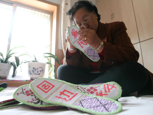 听到许显朝要调离的传言,81岁的老人顾艳梅和女儿连夜缝制了100双鞋垫送给他