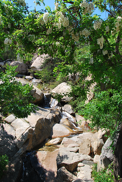 进入景区,就仿佛进入了树的世界、花的海洋,山峰和流水掩映期间,美轮美奂,路旁的槐树花甜蜜盛放,一团团一簇簇,空气里都散发着蜜糖的味道。景区还从南美引进了槐树新品种,这些新品种开出粉红色的花朵,这些粉红色的花朵点缀在白色的花丛中,显得格外漂亮。游客们在登山的路途中有花相伴,不再孤单,还能一路有花香和蜂蝶相伴,想想就令人陶醉。