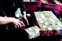 湖南警方正在清点追缴回的赃款。电视截屏图