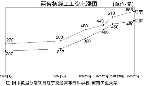 中国劳动力成本的上升在大城市显得尤为明显,摩托罗拉公司一位管理人员对记者说,目前中层管理人员的月薪是6000至8000元,而5、6年前的月薪为5000元左右,造成薪酬上升的主要原因是由于同行业竞争的日趋激烈,对人员的高素质要求进一步提高。同时社会普遍生活水平的提高使薪酬同样水涨船高,由于业务的增长,在同行业中始终能保持龙头的地位,效益的提高,人员的薪酬也随之提升。此外,该公司的一线工人,近几年保持在2000元左右,但是也确实有了一定的涨幅。