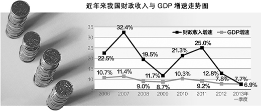 “持续多年的中国财政收入高速增长现象,在很大程度上可以归结为1994年财税改革的产物,是对以往财政收入增速持续下降的矫正,具有相当的补偿性质。”高培勇表示,既然是补偿,那么这种补偿便不会是无止境的。在补偿到达某一节点之后,它必然要回归正常轨道。也就是说,财政收入的持续高速增长,是某一发展阶段的特殊现象,只有与经济增速相适应的财政收入增长,才是常态。