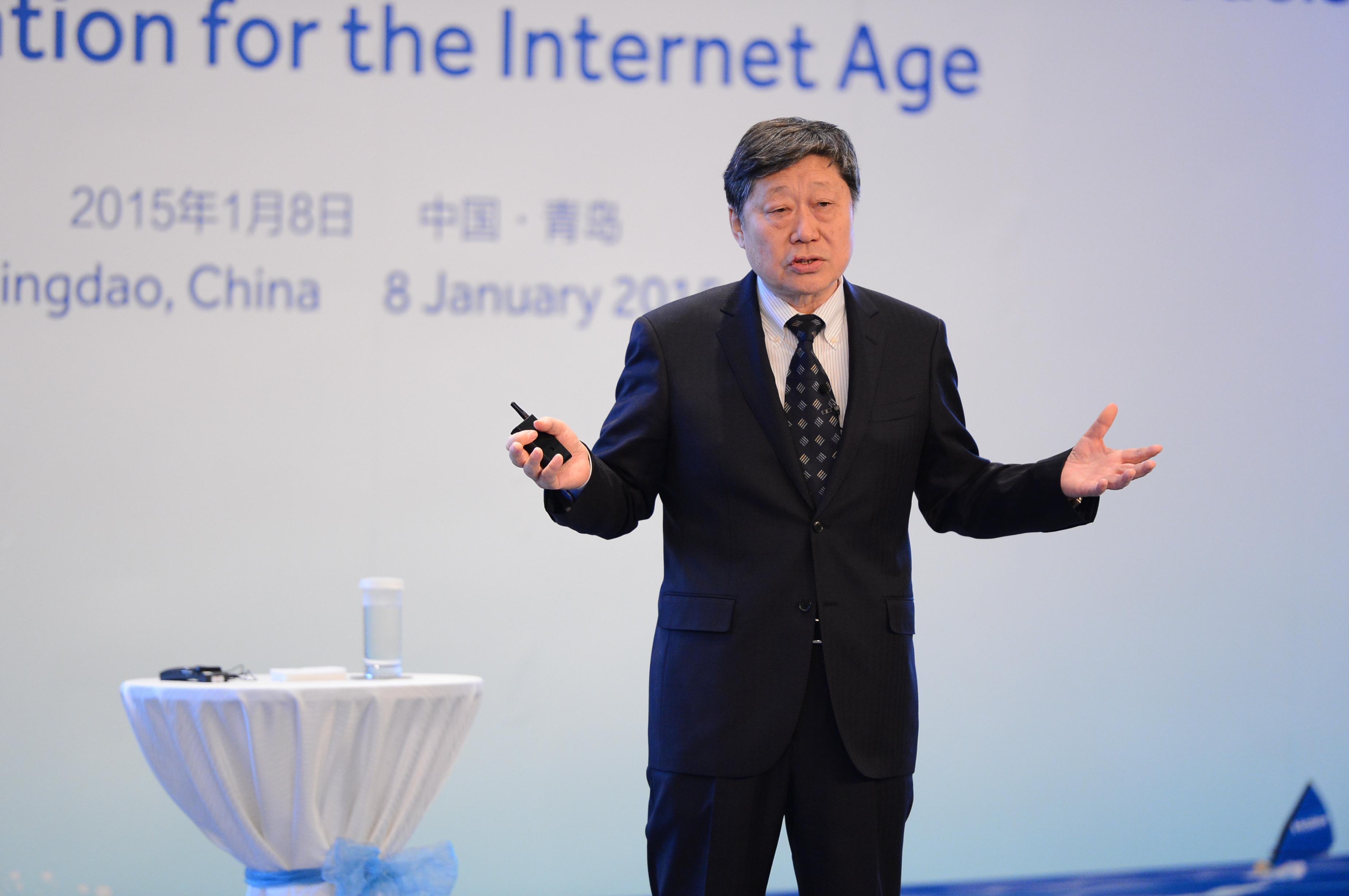 大众网烟台1月8日讯 2015年1月8日上午9时,“海尔互联网模式创新国际研讨会”在海尔洲际酒店海洋厅正式召开。本次研讨会以“变轨加速 创用户最佳生活体验”为主题,旨在探讨海尔在互联网时代的商业模式创新,并寻求中国企业应对互联网时代挑战的道路。
