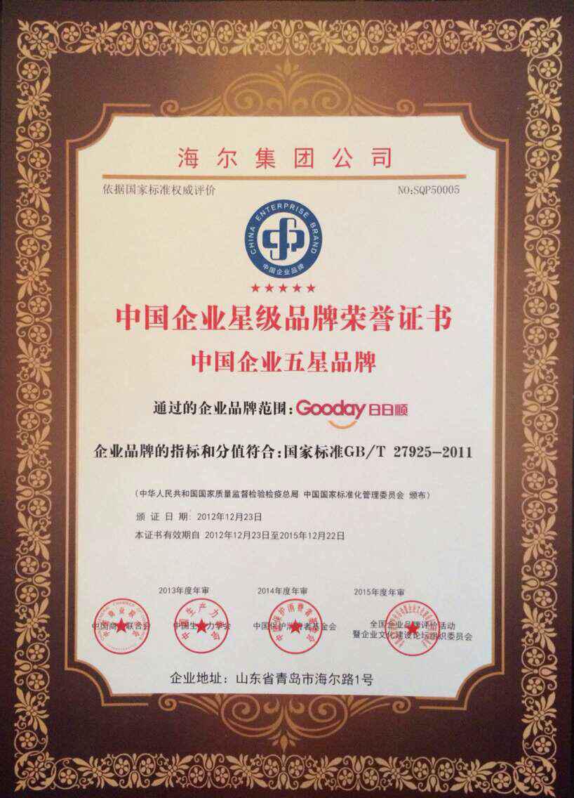 - 日日顺品牌连续三年蝉联“中国企业五星品牌”称号