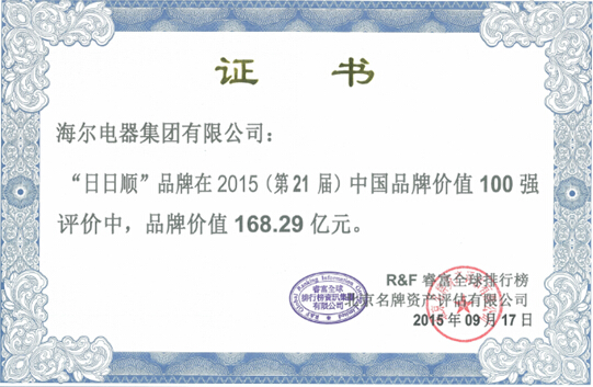 大众网烟台9月18日讯 9月17日,2015(第21届)中国品牌价值100强研究在京揭晓,海尔集团旗下独立子品牌日日顺以168亿元的品牌价值连续三年入围该榜单,品牌价值增速达到20%。