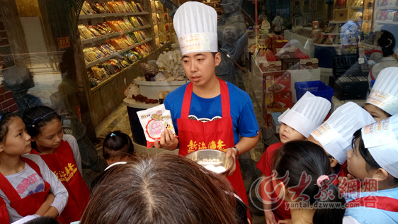糕点师为小记者讲解制作月饼的流程