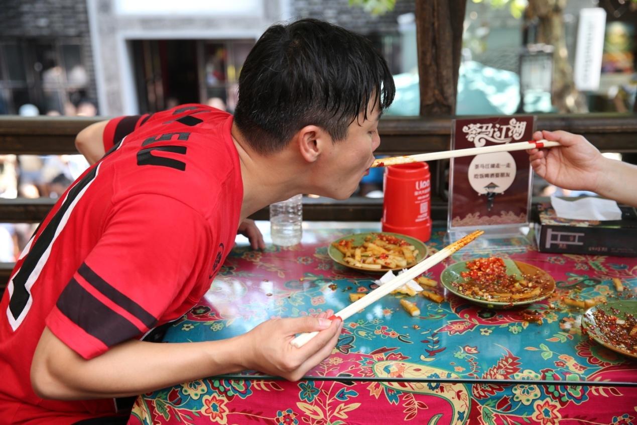 成都站总决赛中,“吃在成都”的环节需要嘉宾用长筷子相互喂食号称当地“辣中之最”的伤心凉粉,长长的筷子、滑溜溜的凉粉、麻麻辣辣的味道,失误次数不得超过三次的设定,都让比赛看起来容易要完成很难。