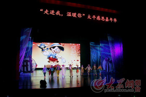 大众网烟台11月14日讯 (记者 张雪松) 重温经典,重试童年美好回忆。今天下午,由山东省互联网传媒集团和太平人寿山东省分公司联袂推出的“走近我,温暖你·太平感恩嘉年华暨首届全省大型经典儿童剧巡演”首场演出在烟台莱山胶东大剧院精彩上演。来自太平人寿烟台中支的1700名客户,跟着“匹诺曹”一起重温经典,感受正能量。