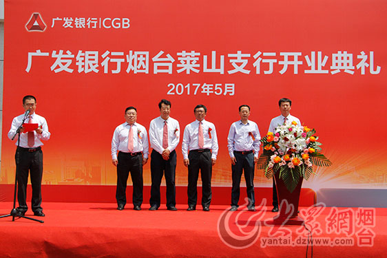 大众网烟台5月31日讯 (记者 曹昱 通讯员 崔城 侯蕾) 31日上午,广发银行烟台莱山支行在烟台市莱山区迎春大街盛大开业,广发银行烟台分行党委书记、行长吴语田,广发银行烟台分行副行长秦建伟,广发银行烟台分行纪委书记于孟州,广发银行济南分行高级经理兼烟台莱山支行行长汤松,绿叶制药集团首席财务官刘元冲等嘉宾出席开业仪式。