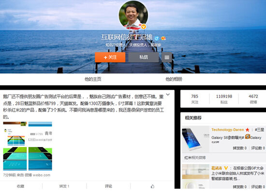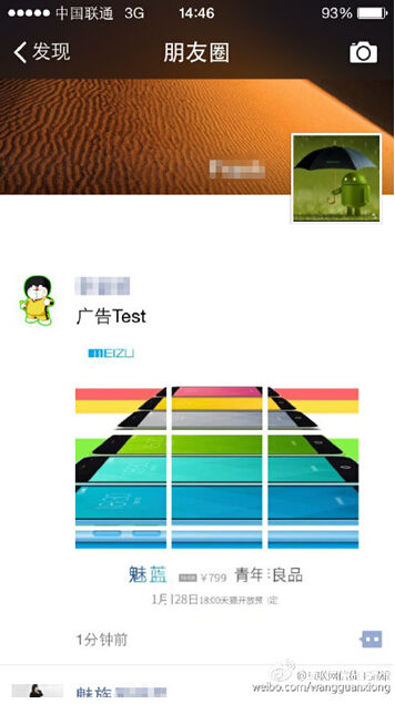 魅族投微信广告 魅蓝新品配置曝光售799