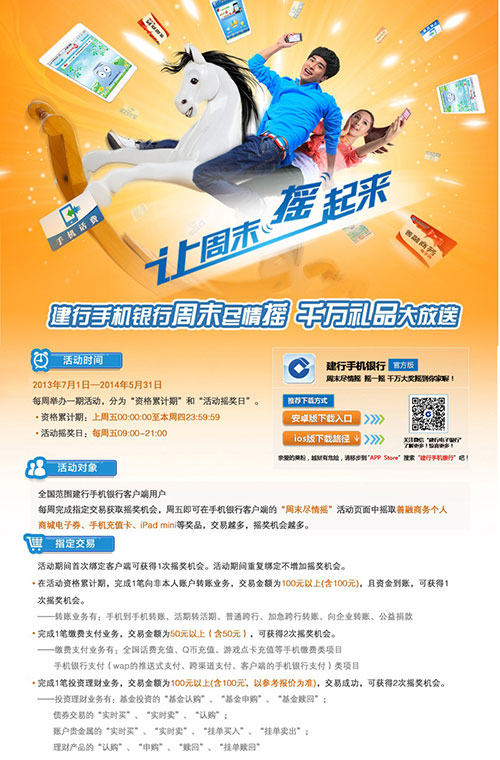 手机银行也疯狂 建行"周末尽情摇"千万大奖