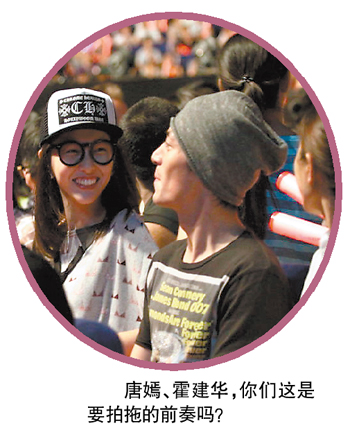 当霍建华见到有记者拍照后立刻起身离开与一位男性友人站一旁继续听演唱会,唐嫣则还是原地不动。
