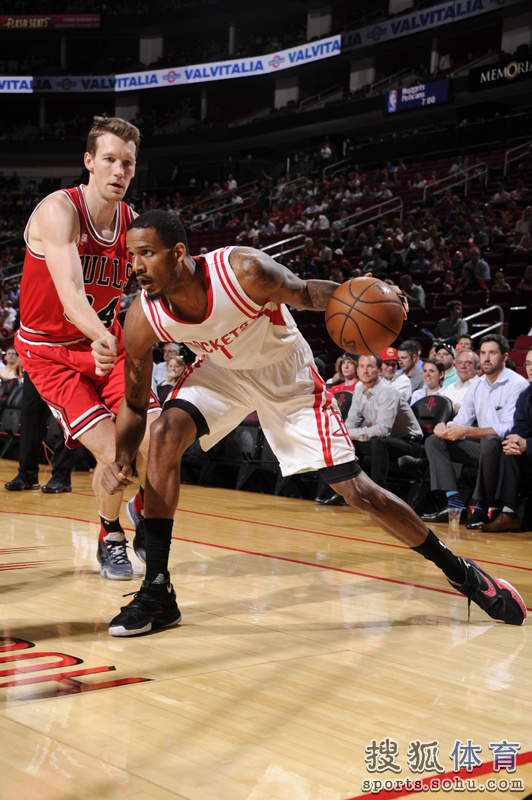 阿里扎突破 北京时间4月1日,2015-16赛季NBA常规赛继续进行,火箭坐镇主场迎战公牛,全场打完,火箭在末节突然断电,100-103输给残阵的公牛,并因此跌出了西部前8。火箭这边,哈登此役20投8中,得到24分8助攻,霍华德得到7分13篮板,生涯防守篮板总数达到8007个,成功突破8000大关。其他球员中,阿里扎得到14分,贝弗利22分7助攻5篮板,替补比利斯20分11篮板。公牛这边,米罗蒂奇得到28分,三分球10中5,成为赢球的头号功臣,巴特勒得到21分8篮板6助攻,加索尔得到12分10篮板3助攻,罗斯只打了一节就因为胳膊伤势退赛,全场仅送出2次助攻。替补麦克德莫特得到15分9篮板,另外,霍乐迪在末节得到8分,成为公牛逆转的奇兵。