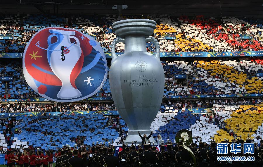 7月10日,演员们在闭幕式上表演。当日,在法国巴黎进行的2016年欧洲足球锦标赛决赛中,法国队对阵葡萄牙队。 新华社记者郭勇摄