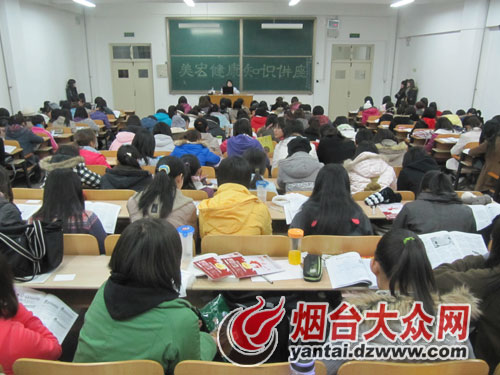 此次健康知识讲坛由烟台大众网健康频道主办,鲁大站化学与材料科学学院女生部、烟台大众网校园记者鲁大站、鲁大人家承办,烟台百信妇科医院协办。讲座中,烟台百信妇科医院金美宏大夫就生理期健康、乳房保健、妇科疾病、宫颈癌的早期预防等一系列与女性健康紧密相关的问题做了详细的解说与指导。