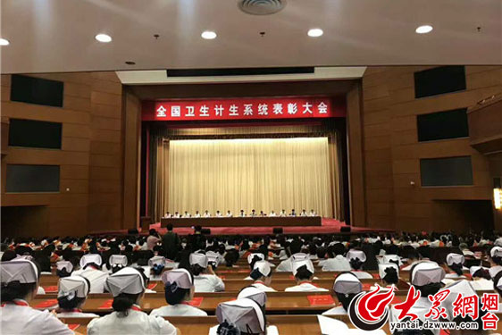 大众网烟台8月18日讯 (通讯员 成修 肖宏 记者 姚辉) 8月17日,全国卫生计生系统先进集体、先进工作者和劳动模范及“白求恩奖章”获得者表彰大会在北京举行,中共中央政治局委员、国务院副总理刘延东,中宣部、中组部、人社部、卫生计生委、中医药管理局领导以及700余位卫生计生系统相关人员出席了表彰大会。烟台毓璜顶医院获“全国卫生计生系统先进集体”荣誉称号,杨军院长代表医院参加了表彰大会并领奖。