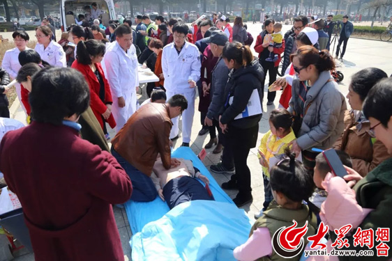 大众网烟台3月28日讯 (通讯员 战文静 记者 姚辉) 为积极响应党的十九大关于建设健康中国,为人民群众提供全方位、全周期健康服务的重要精神,3月24日,栖霞市人民医院组织急诊科志愿者来到栖霞市文化广场,面向广大市民开展了急救技能培训及义诊公益活动。