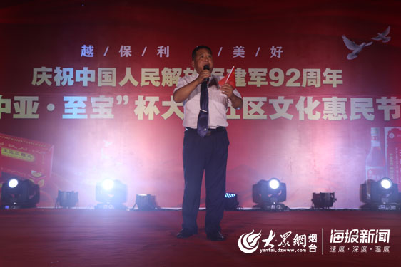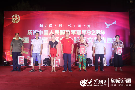大众网·海报新闻烟台8月3日讯 (记者 姚辉 慧慧 邢晨) 8月1日是中国人民解放军建军纪念日,俗称“八一”建军节。8月2日,“越保利 悦美好”庆祝中国人民解放军建军92周年暨“中亚·至宝”杯大众社区文化惠民节走进莱山区保利·香榭里公馆,通过文艺汇演、知识问答等形式,普及生活常识、增进居民联系、营造和谐社区。同时,烟台中亚医药保健酒有限公司还为现役军人、退役军人及其家属准备了精美礼品。