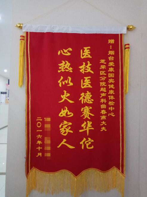 2016年10月 烟台爱康国宾芝罘分院获赠锦旗
