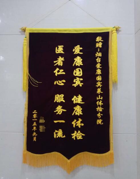 继4月5日烟台爱康国宾体检中心开发区分院获赠锦旗之后,烟台爱康国宾体检中心莱山分院又获一面锦旗。