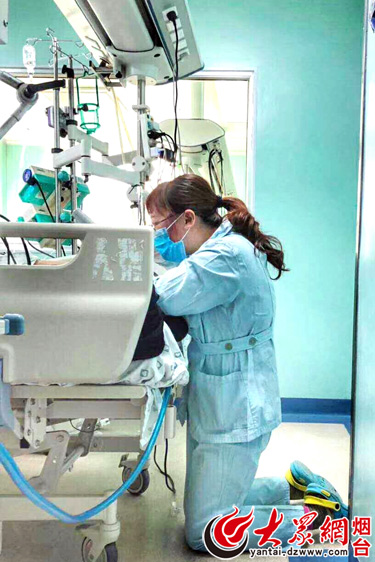 蓬莱市人民医院重症医学科徐英跪地为患者插管