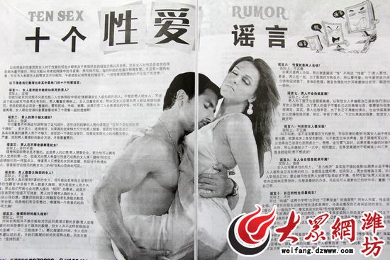 大众网潍坊5月17日讯(记者 于明效)5月16日,潍坊市临朐县张女士致电大众网,称潍坊金盾医院宣传刊物上刊登着“大尺度”“露骨”的低俗图片,居然当街发放给孩子,给他们身心健康造成很不良的影响。经记者调查了解,金盾医院这种“刊物”根本不能在社会上公然发行。
