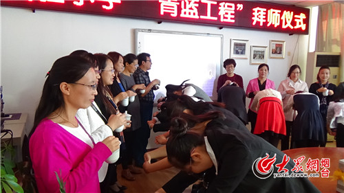 为了发挥学校骨干教师和名师的传帮带作用,加快青年教师成长,10月10日下午,栖霞市实验小学举行“青蓝工程——师徒结对”拜师仪式,49位骨干教师、青年教师、学校领导、指导专家及学校前任老领导参加。