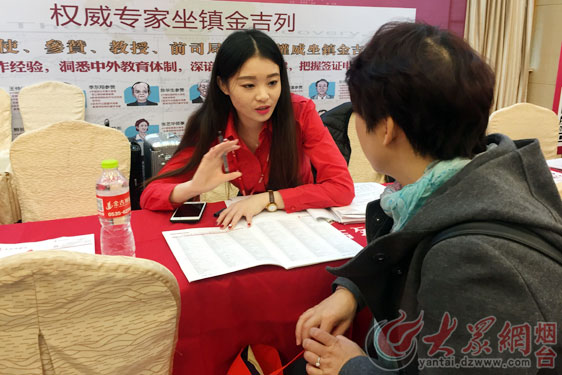 大众网烟台11月19日讯 (记者 姚辉) 11月19日,“大爱·依然”金吉列出国留学第50届海外院校全国巡回招生面试会——烟台站举行。除美国、英国、加拿大、澳大利亚、日本、韩国、俄罗斯等10余个国家,近百所海外院校招生面试官齐聚现场外,驻美前公使衔教育参赞艾方林、驻英国使馆前教育参赞王百哲、驻加拿大总领馆前教育领事薛浣白也亲临现场,为800多名到场家长及学生进行留学公益讲座。