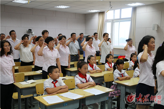 大众网烟台9月12日讯 (通讯员 王水玉 记者 邢晨) 为进一步加强教师师德建设,切实增强教师教书育人的责任感、使命感和荣誉感,9月11日下午第三节课,回里小学全体教师齐聚录播室举行了教师宣誓活动。