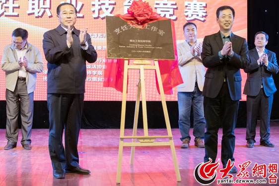 烟台工贸技师学院张丛书记、烟台市人社局于腾副局长与共同为学院“烹饪大师工作室”揭牌
