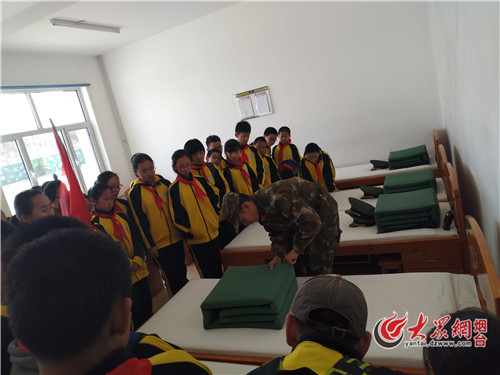 到达目的地后,两个中队的同学们在两名班长的带领下,分别参观了武警战士们的图书室、荣誉室、学习室、餐厅和宿舍等。在看到卫生间里牙杯和牙刷的方向全部一致时,在看到宿舍床单平整得像一张白纸时,在看到被子叠得方方正正棱角分明时,孩子们禁不住发出一阵阵赞叹!有个学生悄悄问家长:“这个被子是用来盖的吗?”善解人意的班长立即笑了,他猜出了孩子们的困惑,马上拆了一床被子现场展开了演示。被子怎么折、怎么打,一根小棍在他手下灵活地敲动,一件艺术品瞬间在孩子们眼前诞生了。眼见为实,班主任林晓霞老师现场教育道:“不是做不到,高标准严要求,才能练出真本事。”