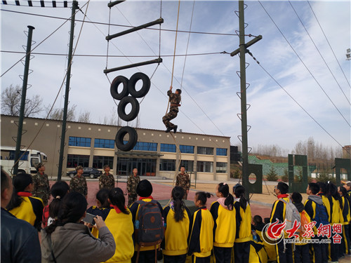之后,孩子们来到了令人激动的训练场,看到了在电视上才能见到的训练器械,见识了图片中飞起来的三人协力攀登、抓绳上等特技,掌声响彻在训练场,久久不息。孩子们最兴奋的,还是观看了擒敌拳后,班长们现场教授了他们简单的擒敌技巧。摩拳擦掌,你来我往,呼哈嘿哈……孩子们像快乐的小鸟,在国家、学校、家庭安全的保护下,展翅飞翔。