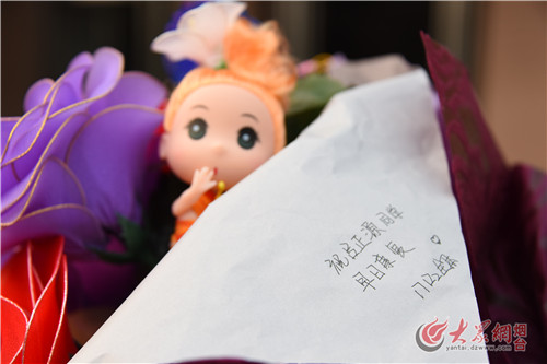 10月末的莱阳已经有了寒意,但在募捐现场,莱阳卫校的全体学生却满怀爱心,有秩序地将自己的捐款投入捐款箱中。记者在现场看到,许多学生不仅为吕正源捐了款,还为她精心准备了许多小礼物。鲜艳的千纸鹤、精美的永生花、可爱的小兔子,一件件礼物虽然并不太值钱,但每一件都是学生们对吕正源的祝福。“我们都特别想正源,特别希望她能马上回到我们身边,作为班集体,每一个同学都是大家的牵挂。”2017级药学一班班长王忆遥和同学们为此次募捐活动进行了细致的筹划,对于大家的爱心捐款,王忆遥特别感动。“真的很感动,相信有大家的帮助,我们的正源一定会好起来的,我们全班同学都在等她回来!”王忆遥说。