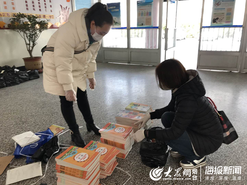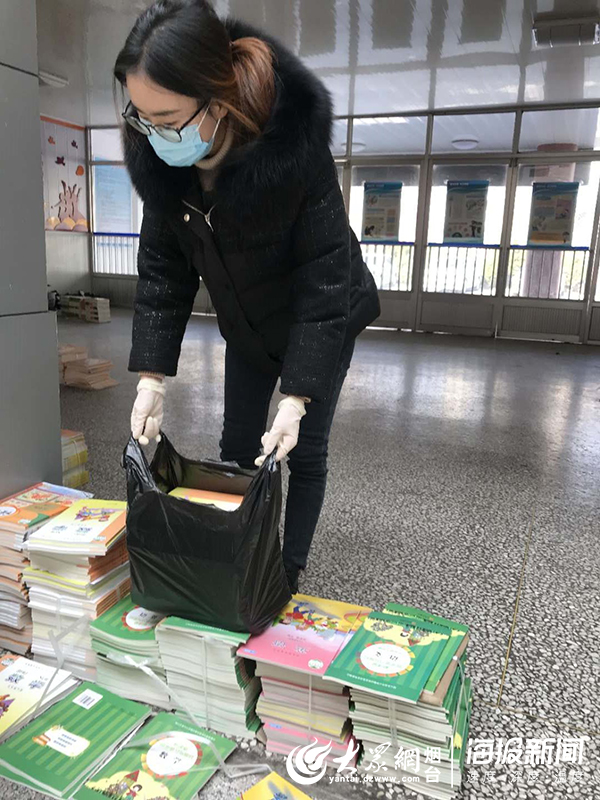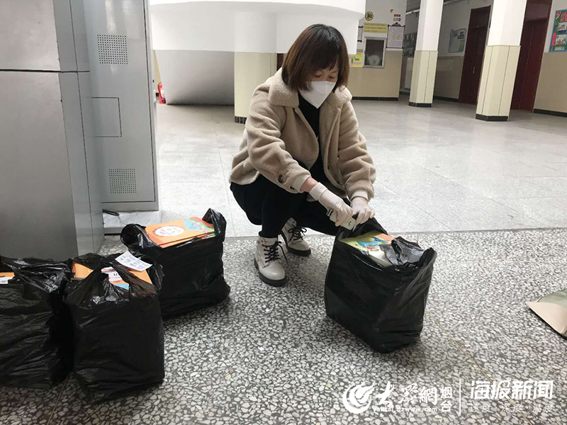分书人员配戴口罩、手套,将教材教辅清点分班,班主任将本班级教材教辅按分组人数进行装袋打包,并对每组图书做好标记,以便于家长取书时进行核对。16个教学班的班主任将分成4批次,安排错时到校分书。