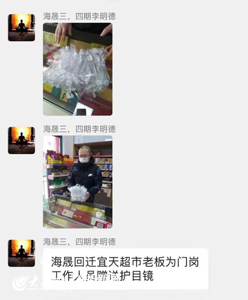 无独有偶,晚上10点半,另一个小区执勤点上也收到了热心群众送来的面包和火腿,“你们辛苦了,看到你们认真负责的样子,作为业主,我们就放心了,面对疫情,有你们在,我们也不害怕。”也谢谢你们,“蒙面好心人们”,你的出现温暖着这个寒冬。