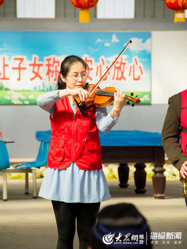 大众网龙口·海报新闻3月25日讯 (通讯员 吕世军 张莹) 随着《我和我的祖国》音乐响起,在龙口市晨光慈善义工队文艺志愿者张莹和宋炳娟等人拉着小提琴、吹着萨克斯,来到了60多位老人们的面前。志愿者们情不自禁纷纷聚拢了过来,一起唱响《我和我的祖国》。澎湃的激情、深情的歌声和动听的小提琴声,悠扬的萨克斯声,共同汇成一片欢乐的海洋。大家倾情向祖国告白,用激越的旋律,表达对祖国母亲的无限热爱,和对美丽家乡龙口的诚挚祝福。