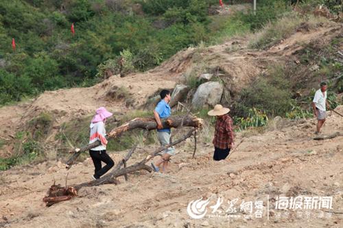 初秋龙口,绿满山野。下午三四点钟,秋阳的威力减了几分,龙口市下丁家范家村的村民们便上了山,一个声势浩大的人机齐上阵平整土地的场面正在这里铺开。