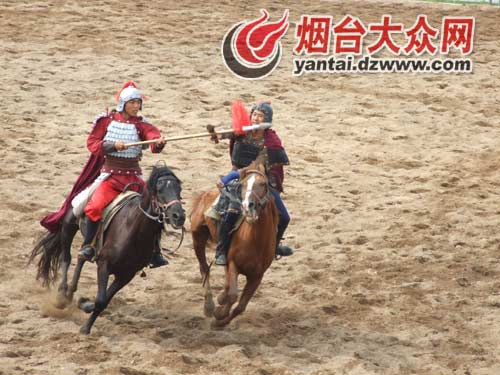 在天上王城景区,记者一行领略了被誉为七十二崮之首的纪王崮的壮观,海拔577.2米,山势陡峭。随后,来到大型马战表演场地,特技演员精彩的表演赢得了游客的阵阵叫好声,再现了两千多年前纪国王城的生活和军事训练以及战场厮杀的场面。